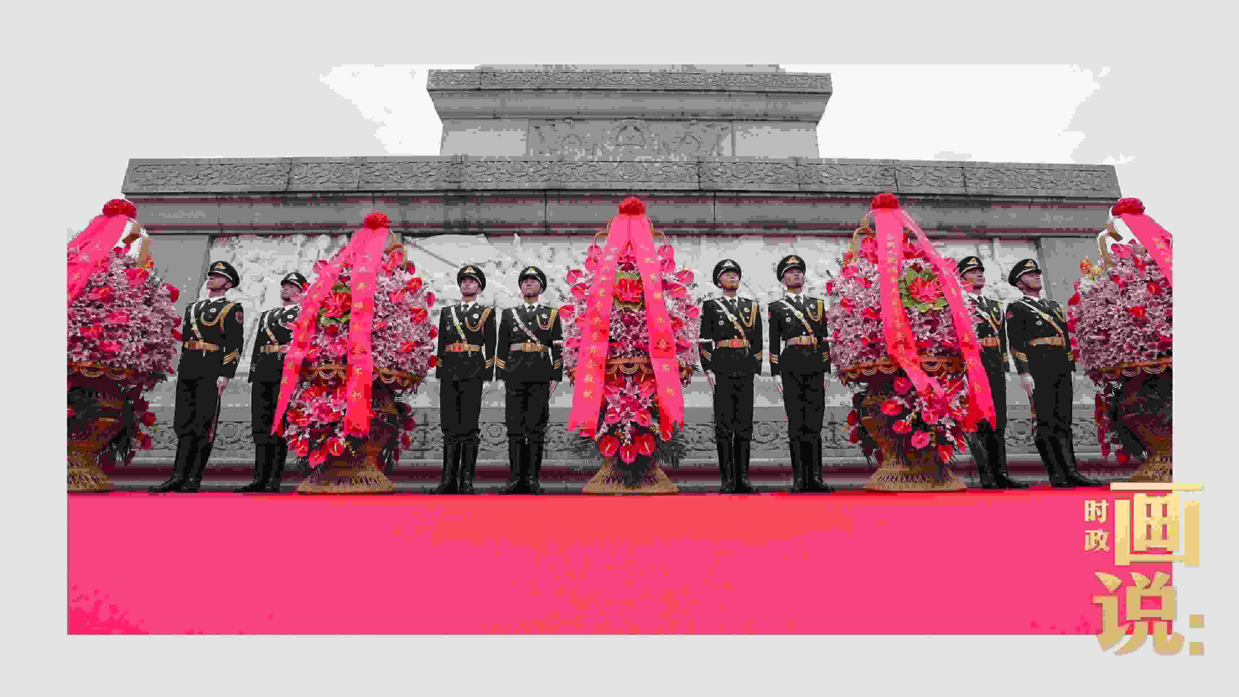 △禮兵抬起花籃,緩步走向人民英雄紀念碑。