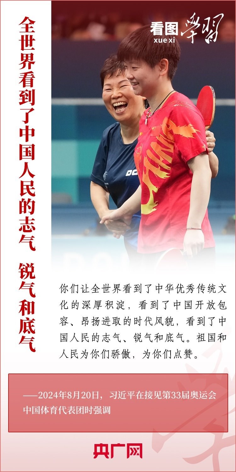 “祖國(guó)和人民為你們驕傲,為你們點(diǎn)贊?!?月20日,習(xí)近平總書(shū)記在人民大會(huì)堂接見(jiàn)第33屆奧運(yùn)會(huì)中國(guó)體育代表團(tuán)并發(fā)表重要講話??倳?shū)記高度肯定中國(guó)體育代表團(tuán)取得的優(yōu)異成績(jī),贊揚(yáng)他們充分彰顯了新時(shí)代中國(guó)力量、生動(dòng)詮釋了新時(shí)代中國(guó)精神、充分展現(xiàn)了新時(shí)代中國(guó)形象,勉勵(lì)大家戒驕戒躁、再接再厲,為建設(shè)體育強(qiáng)國(guó)再立新功。一起來(lái)學(xué)習(xí)!