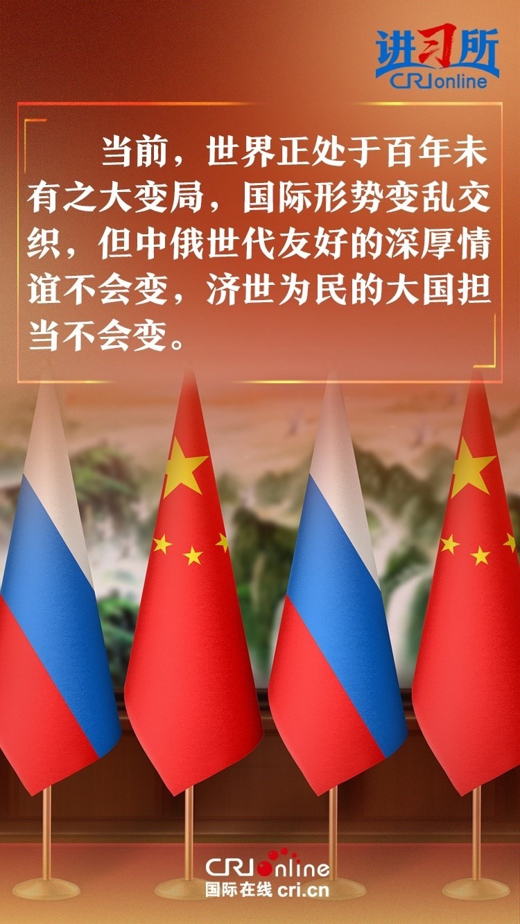 習近平主席在同俄羅斯總統(tǒng)普京會晤時指出,中俄世代友好的深厚情誼不會變,濟世為民的大國擔當不會變。雙方要繼續(xù)推動共建“一帶一路”倡議和歐亞經(jīng)濟聯(lián)盟深入對接,為促進各自經(jīng)濟高質(zhì)量發(fā)展提供動力支撐。