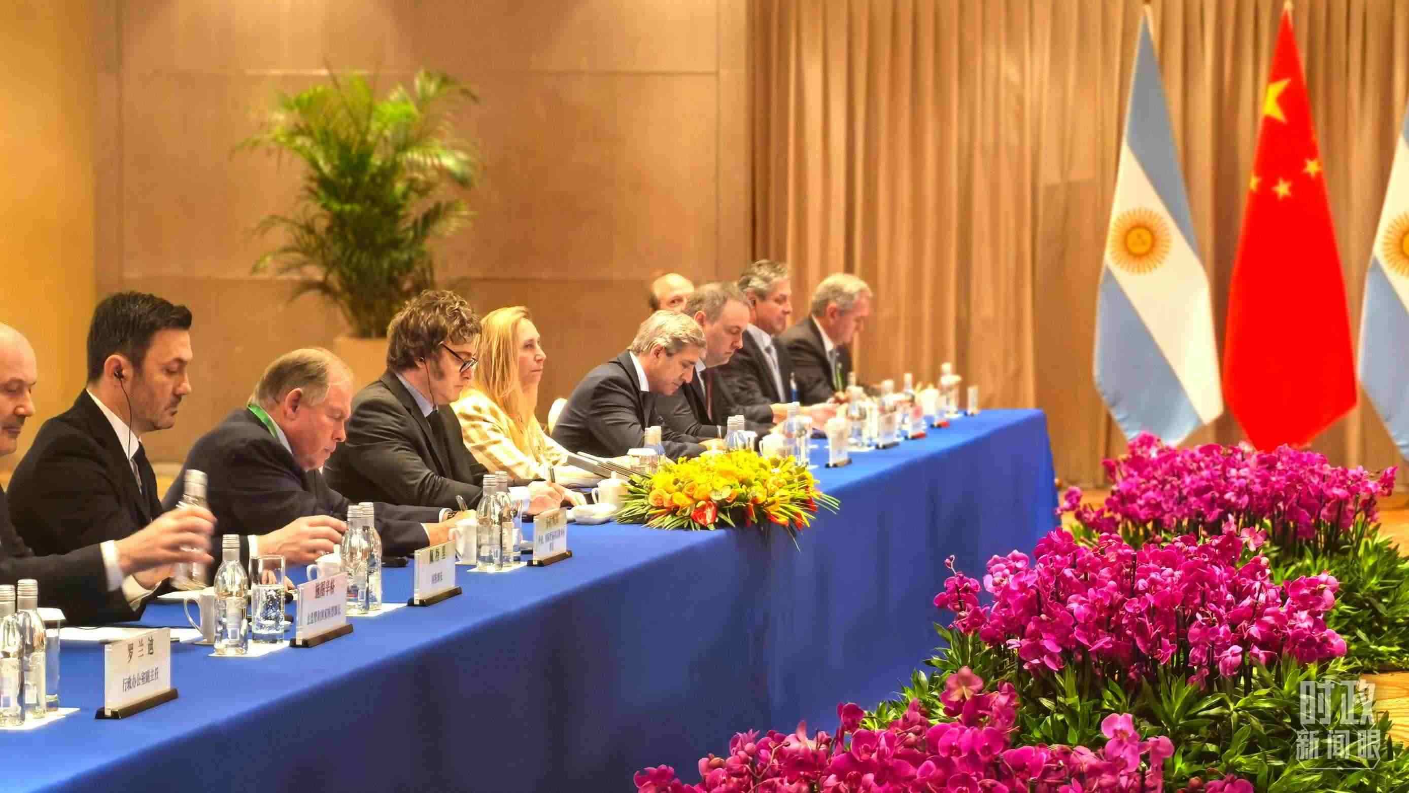 △習(xí)主席會(huì)見(jiàn)阿根廷總統(tǒng)米萊現(xiàn)場(chǎng)。(總臺(tái)央廣記者潘毅拍攝)