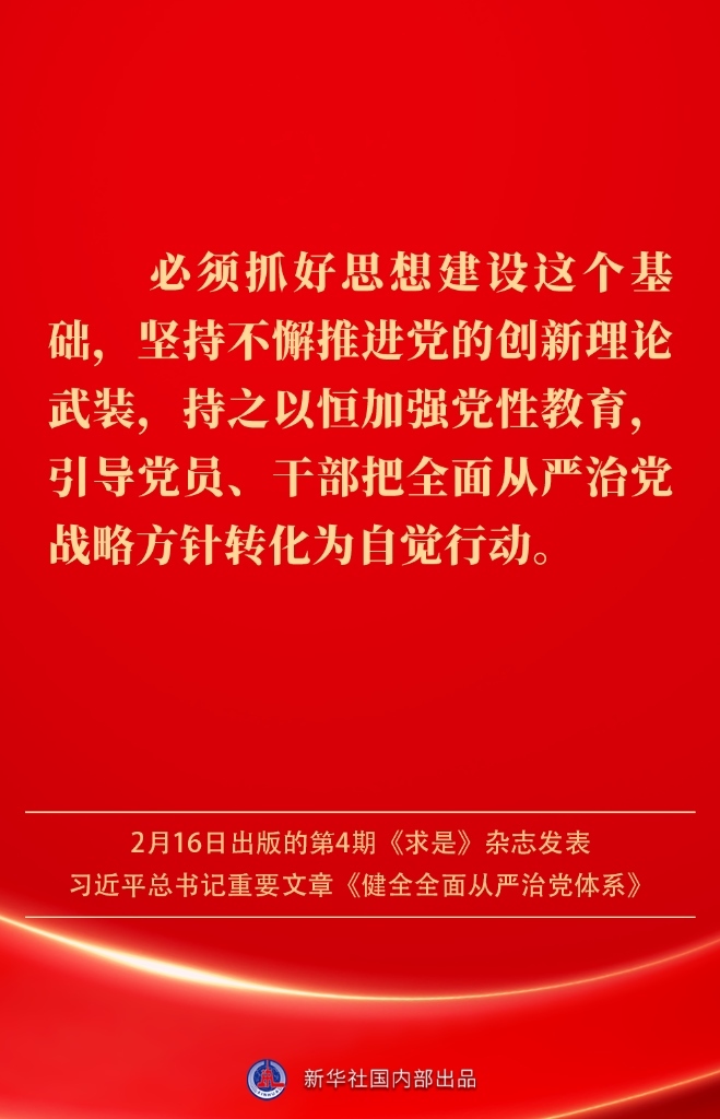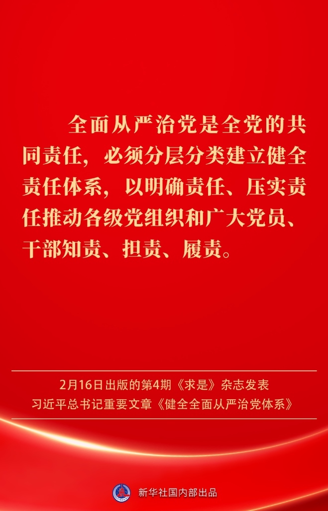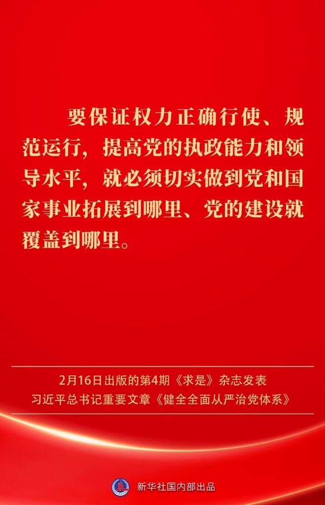 2月16日出版的第4期《求是》雜志發(fā)表習(xí)近平總書記重要文章《健全全面從嚴(yán)治黨體系》。如何進(jìn)一步健全要素齊全、功能完備、科學(xué)規(guī)范、運(yùn)行高效的全面從嚴(yán)治黨體系?習(xí)近平總書記闡明要旨——