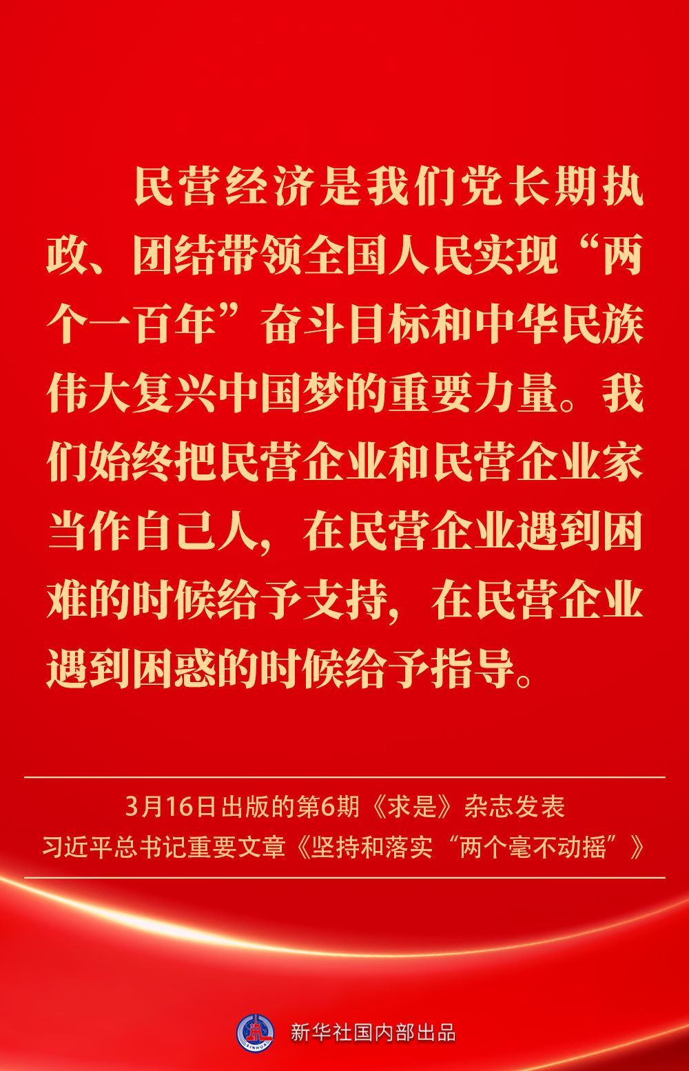 3月16日出版的第6期《求是》雜志發(fā)表習(xí)近平總書(shū)記重要文章《堅(jiān)持和落實(shí)“兩個(gè)毫不動(dòng)搖”》。這是習(xí)近平總書(shū)記2013年11月至2025年2月期間有關(guān)重要論述的節(jié)錄。如何認(rèn)識(shí)“兩個(gè)毫不動(dòng)搖”?公有制經(jīng)濟(jì)和非公有制經(jīng)濟(jì)是怎樣的關(guān)系?習(xí)近平總書(shū)記這樣闡述——