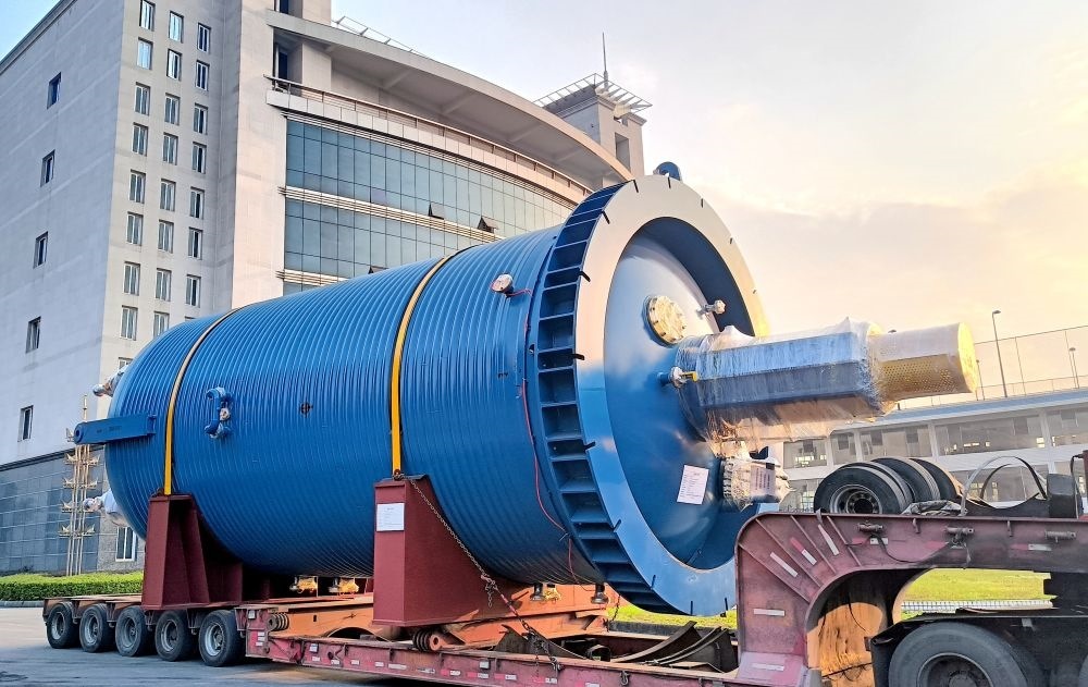 2024年1月3日,岷江實(shí)業(yè)集團(tuán)生產(chǎn)的大型化工設(shè)備運(yùn)輸出廠。(受訪者供圖)
