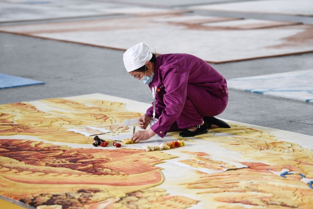 2019年,經(jīng)人介紹,張淑菊到圣源地毯工作。剛來的時候,她心里沒底:“以前干的凈是些粗活,咋練這‘繡花’功夫?”但經(jīng)過公司的技能培訓,她很快熟悉了這項工作,一干就是6年多。如今,她每月工資有5000多元?!百I房了,女兒也上大學了?!睆埵缇照f,這些都是來這里工作后的變化,“等交房了,我要在客廳擺一張自己制作的藏毯”。