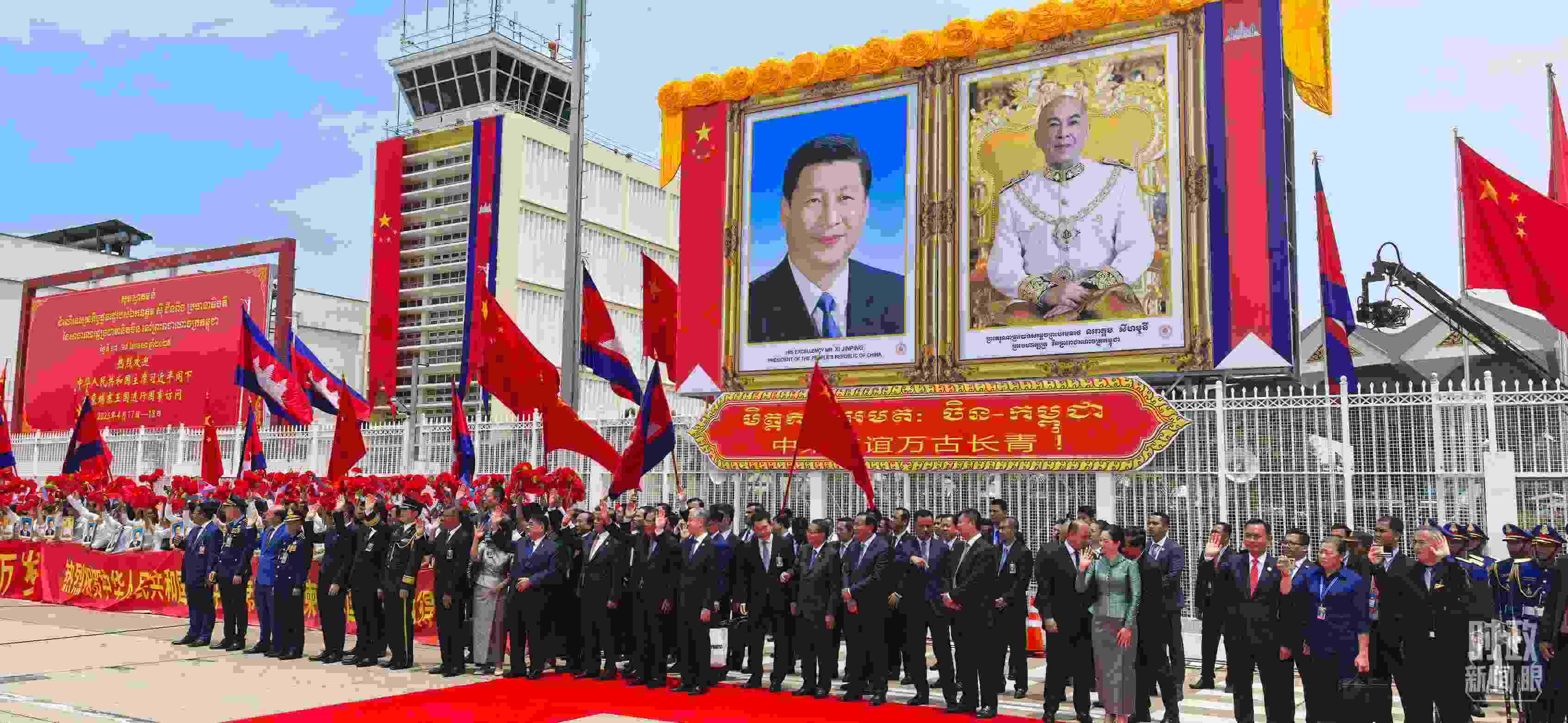 △習(xí)主席離開(kāi)金邊時(shí),柬埔寨領(lǐng)導(dǎo)人和民眾到機(jī)場(chǎng)送行。(總臺(tái)央視記者周志國(guó)拍攝)