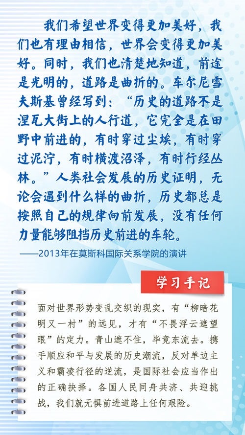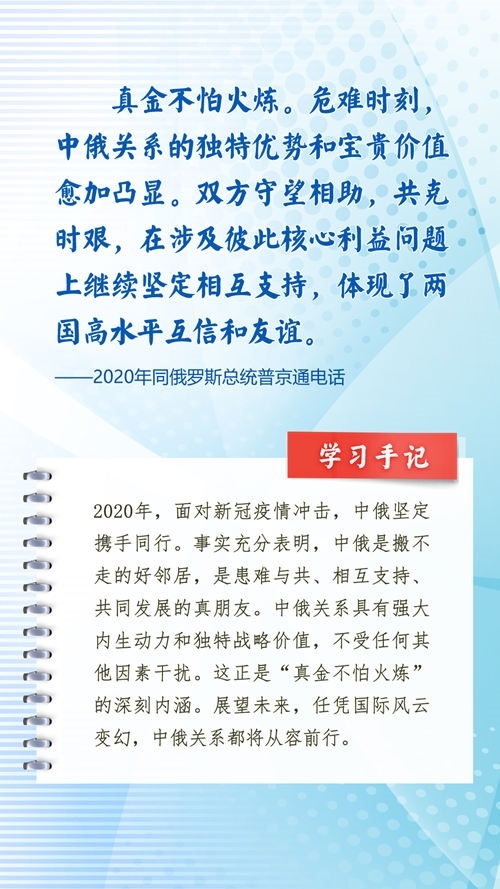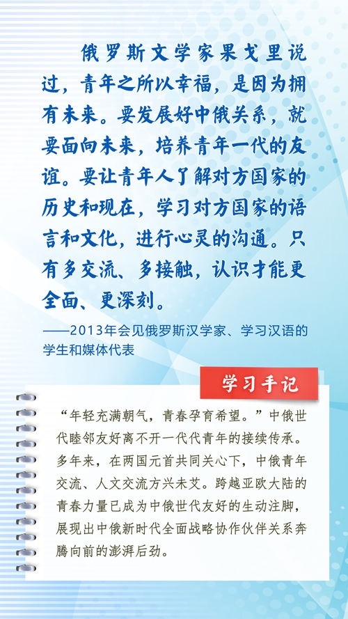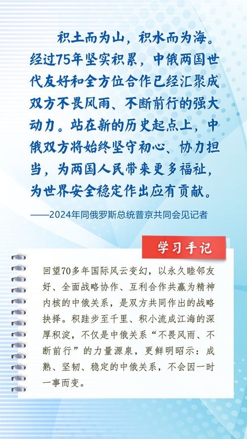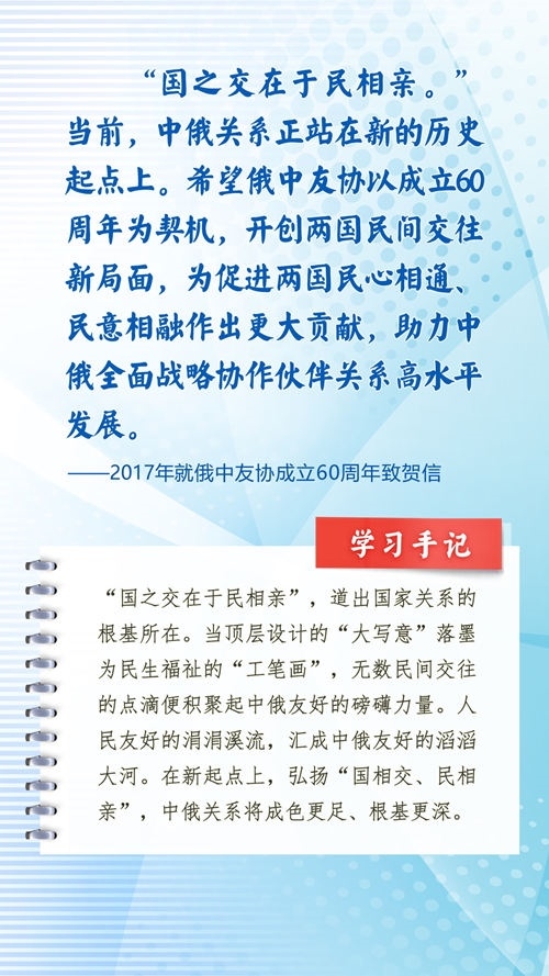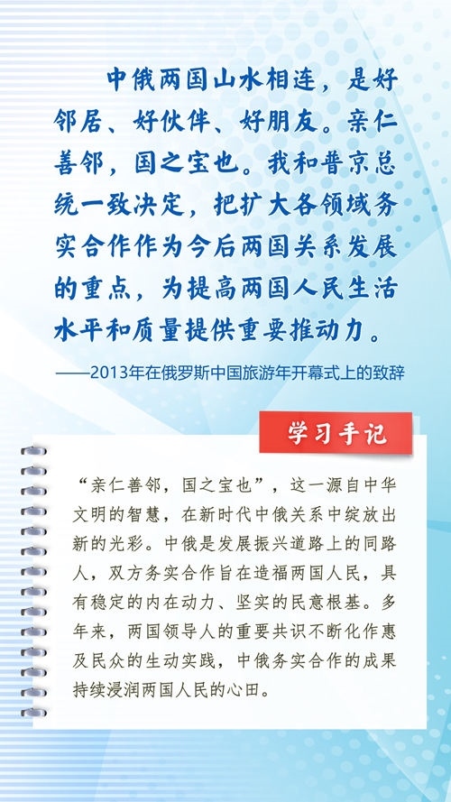 我們一起來學(xué)習(xí)品讀這些飽含哲思的論述,從中感悟新時(shí)代中俄關(guān)系在復(fù)雜的外部環(huán)境下堅(jiān)毅前行之道,感悟習(xí)近平主席作為大黨大國領(lǐng)袖、世界級領(lǐng)袖的時(shí)代擔(dān)當(dāng)與天下情懷。