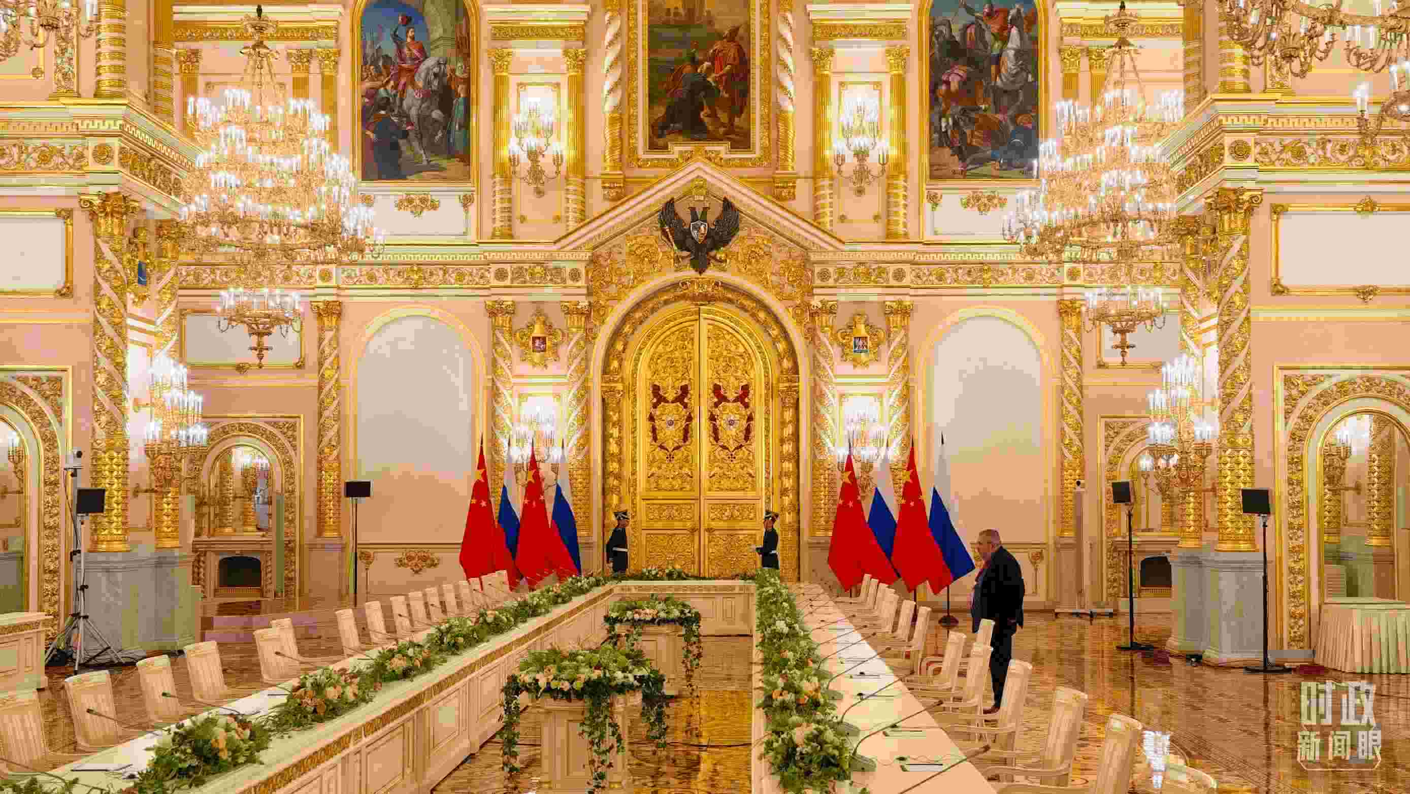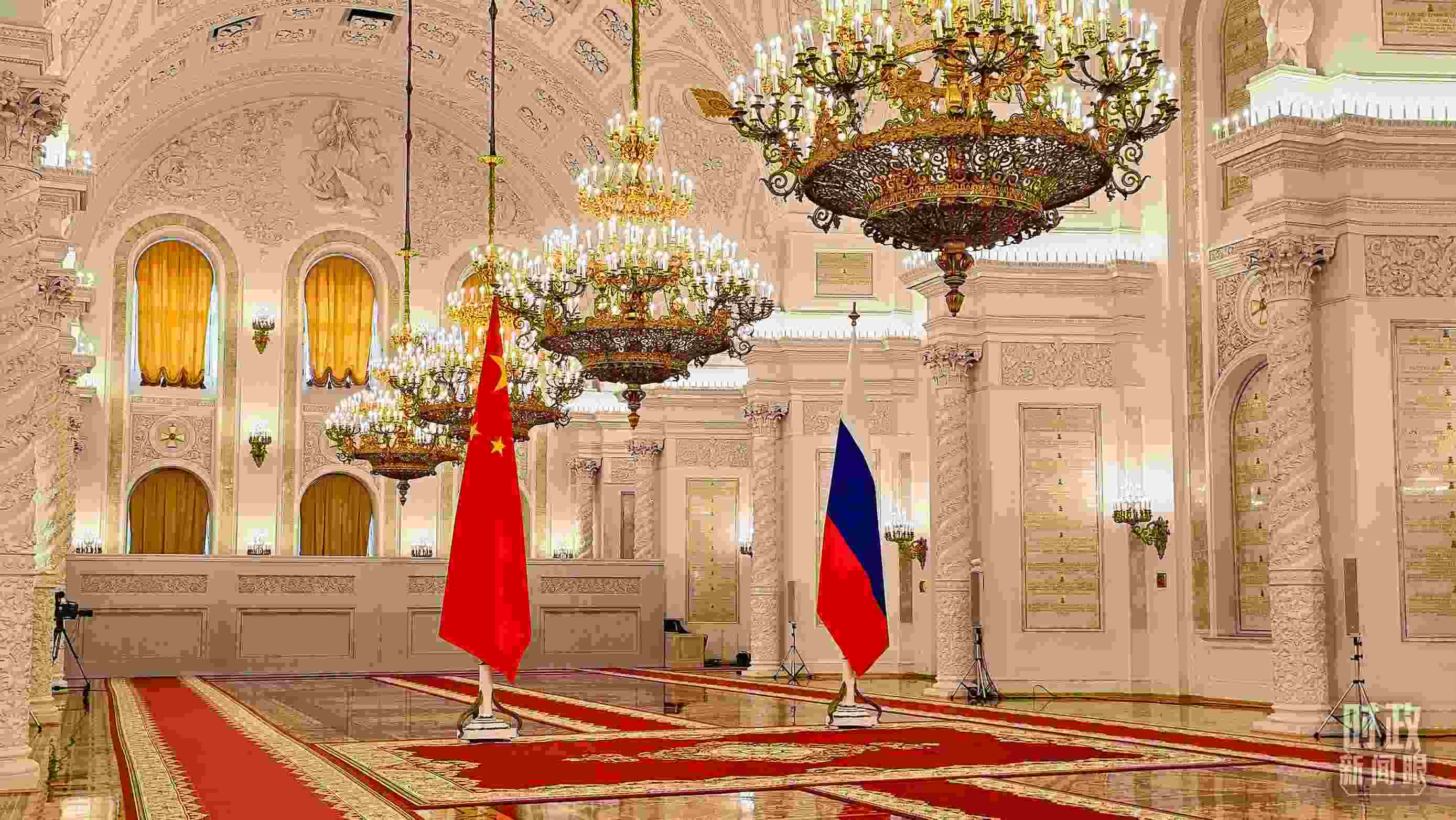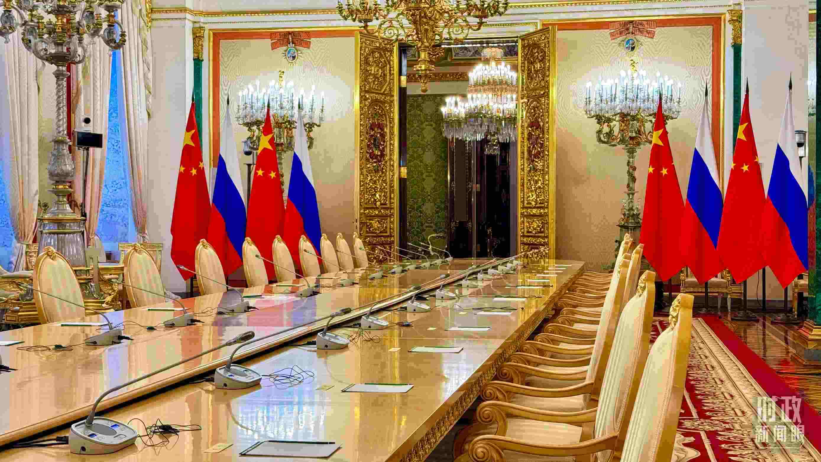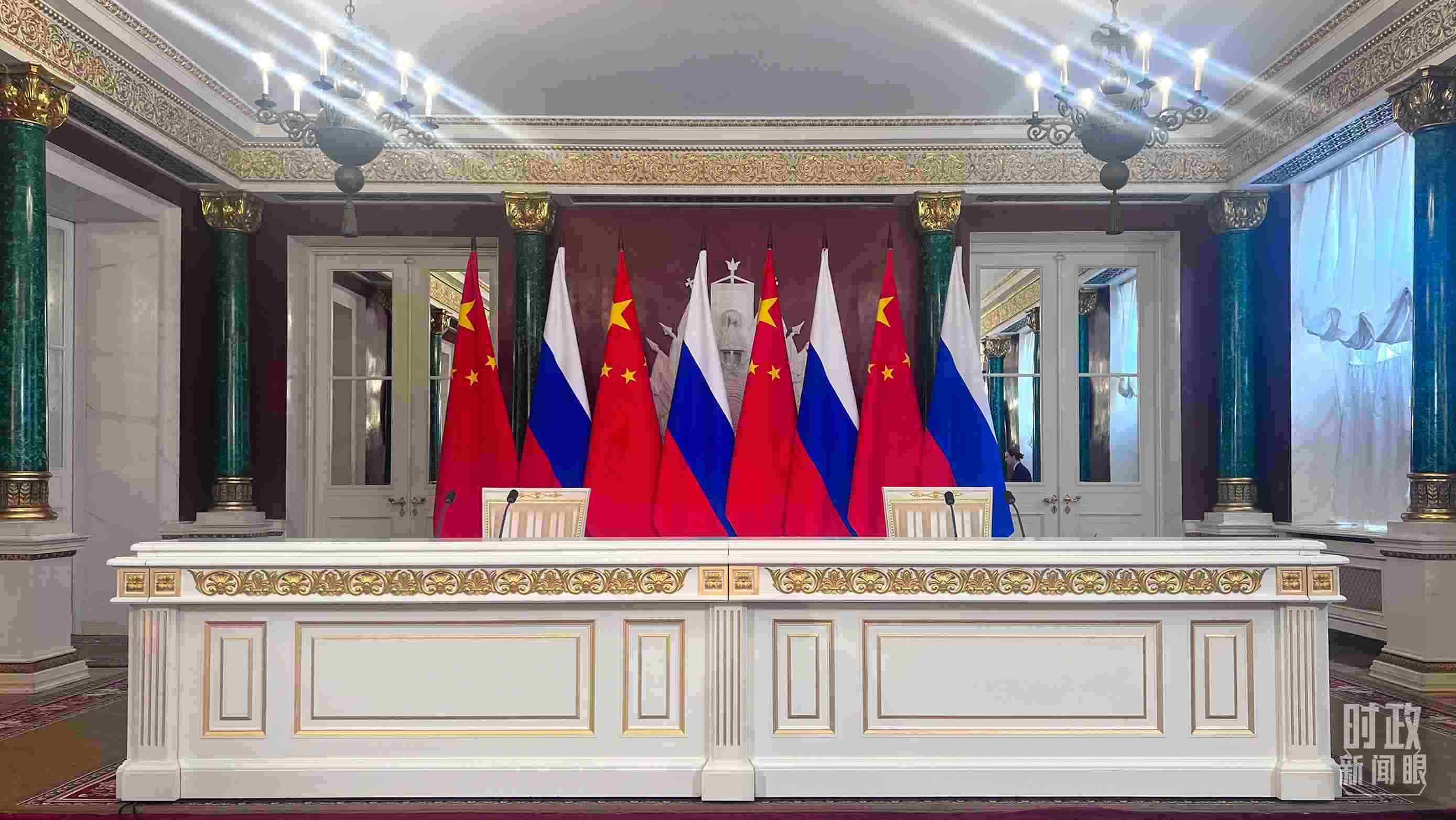 △習(xí)主席和普京總統(tǒng)舉行大范圍會(huì)談的會(huì)場(chǎng)。(總臺(tái)央視記者趙東辰拍攝)