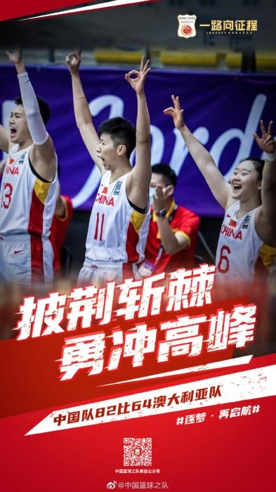 中新網(wǎng)客戶端北京9月30日電 北京時(shí)間29日晚,2021年女籃亞洲杯在約旦首都安曼結(jié)束了小組賽階段的爭(zhēng)奪,中國(guó)女籃在小組賽末輪比賽中以82:64擊敗勁敵澳大利亞隊(duì),晉級(jí)四強(qiáng)。
