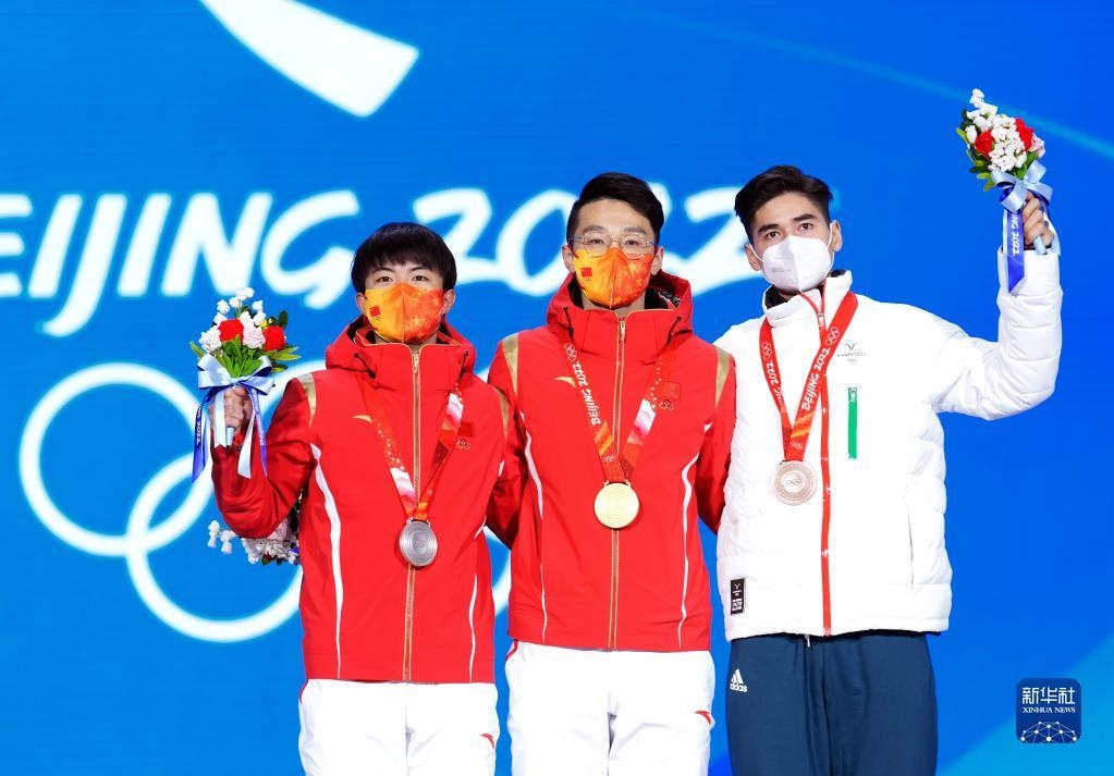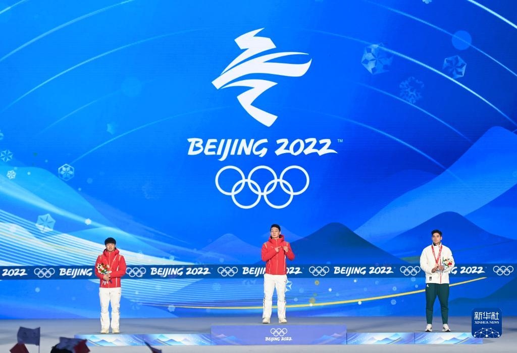 當(dāng)日,北京2022年冬奧會(huì)短道速滑男子1000米獎(jiǎng)牌頒發(fā)儀式在北京賽區(qū)頒獎(jiǎng)廣場(chǎng)舉行。