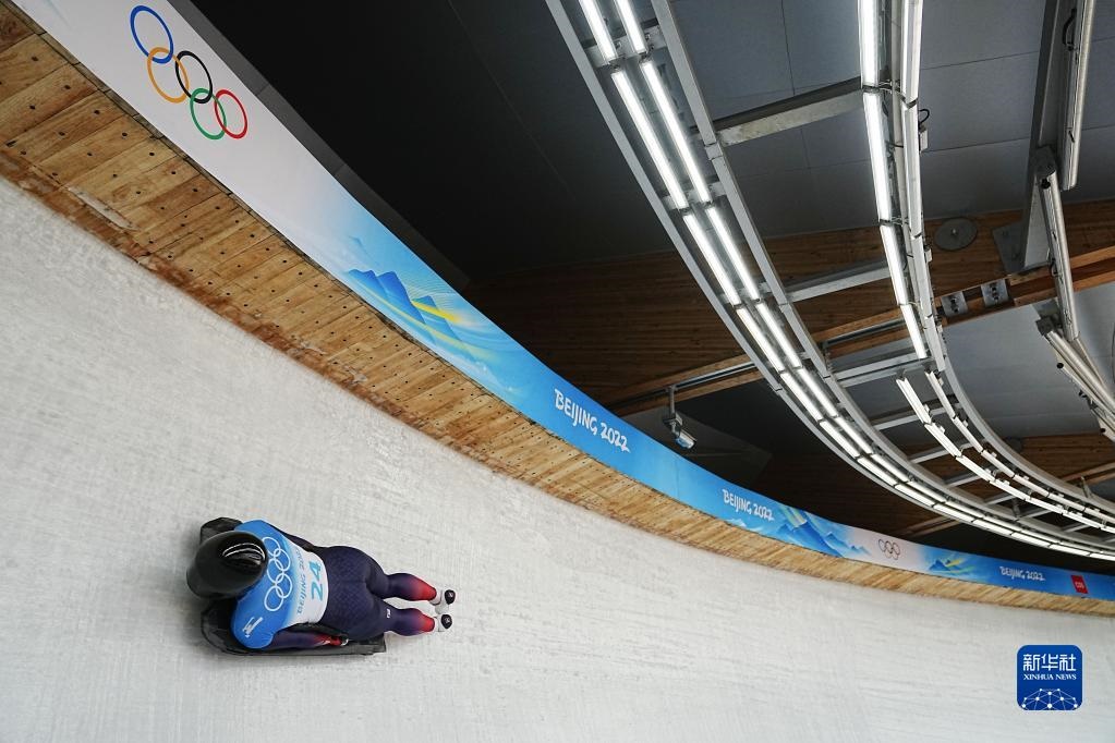 當(dāng)日,北京2022年冬奧會(huì)女子鋼架雪車項(xiàng)目比賽在國(guó)家雪車雪橇中心舉行。