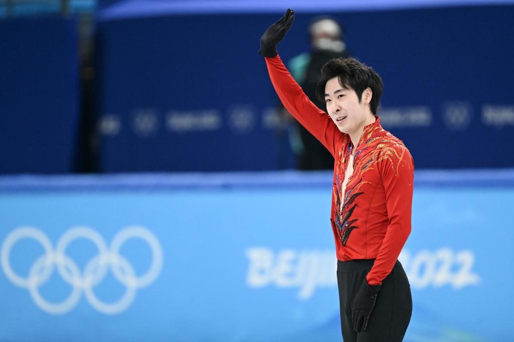 2月10日,中國選手金博洋在男單自由滑比賽后。新華社記者鞠煥宗攝
