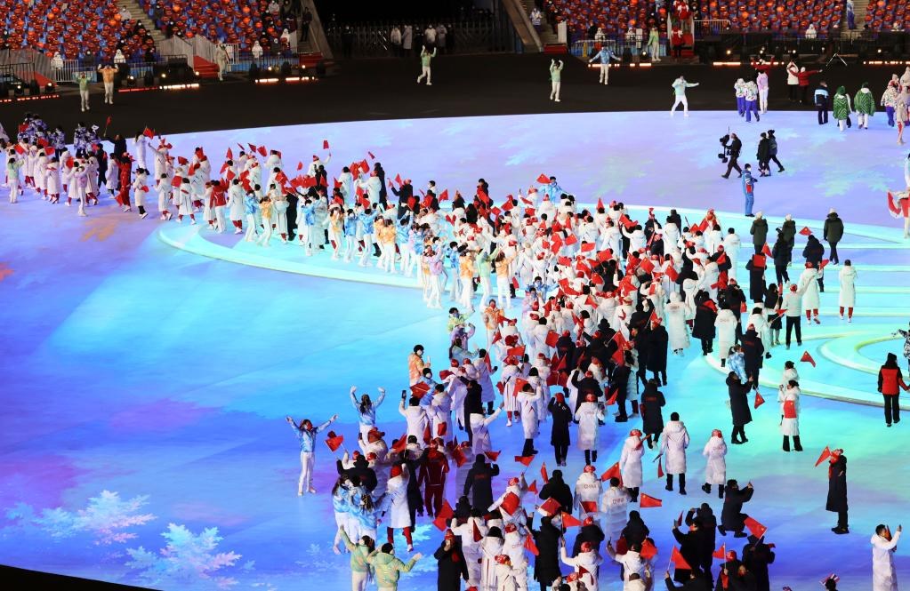 2月20日晚,北京第二十四屆冬季奧林匹克運(yùn)動(dòng)會(huì)閉幕式在國家體育場(chǎng)舉行。圖為中國代表團(tuán)成員入場(chǎng)。新華社記者李尕?cái)z