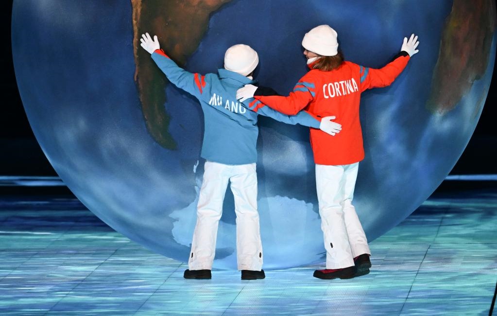 2月20日晚,北京第二十四屆冬季奧林匹克運(yùn)動(dòng)會(huì)閉幕式在國家體育場(chǎng)舉行。圖為下屆冬奧會(huì)舉辦城市意大利米蘭與科爾蒂納丹佩佐文藝表演“雙城璧合·聚力聯(lián)輝”環(huán)節(jié)。新華社記者李尕?cái)z