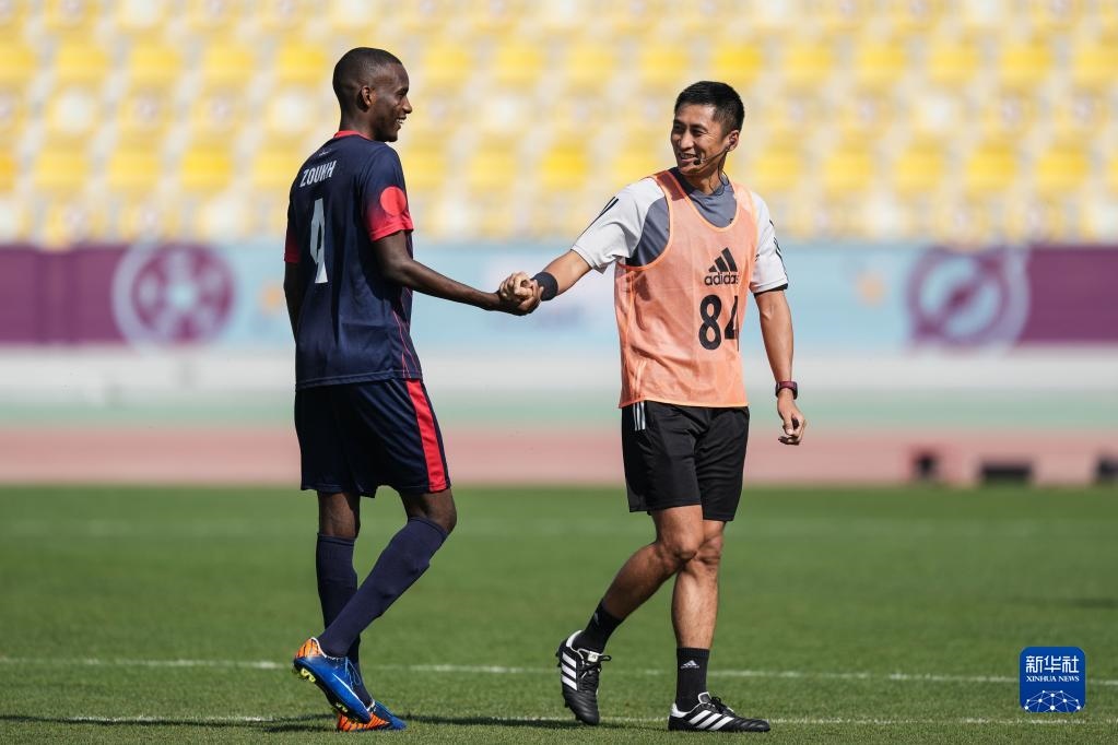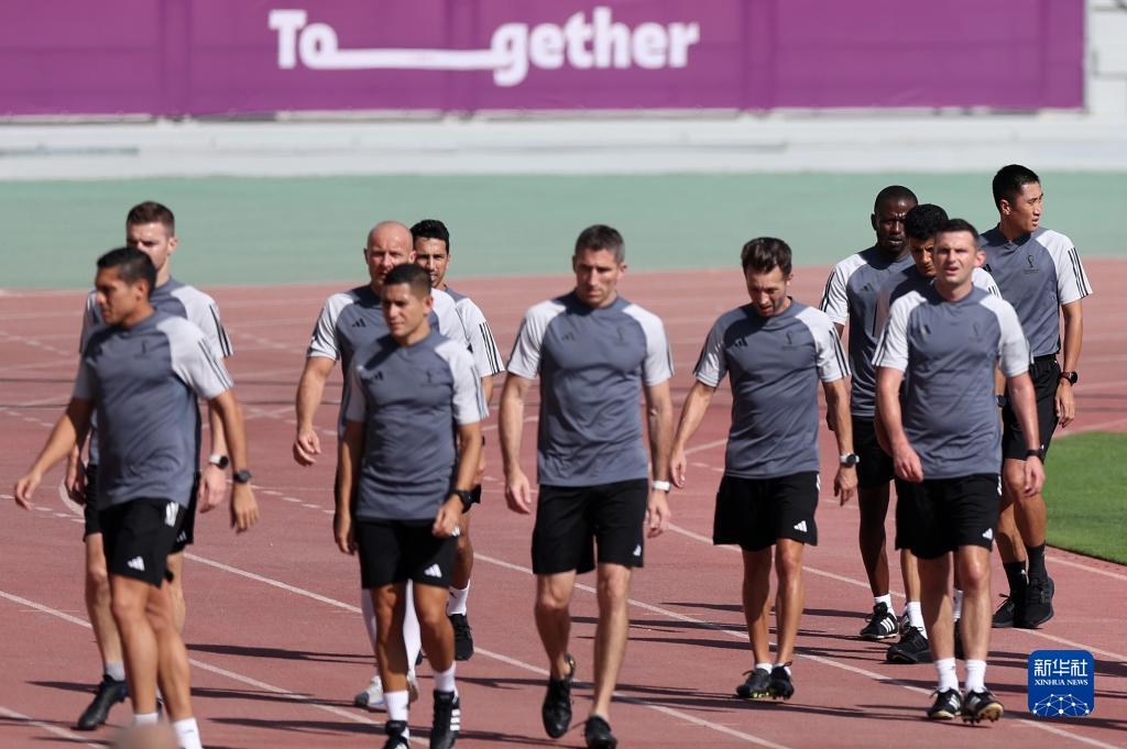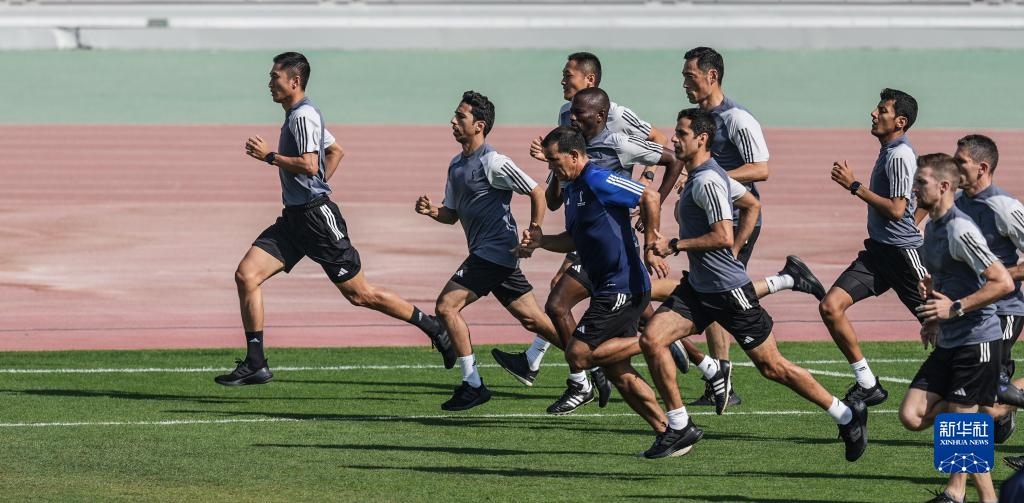 當(dāng)日,入選2022年卡塔爾世界杯裁判員名單的中國裁判馬寧、曹奕與施翔在卡塔爾體育俱樂部球場進(jìn)行訓(xùn)練。