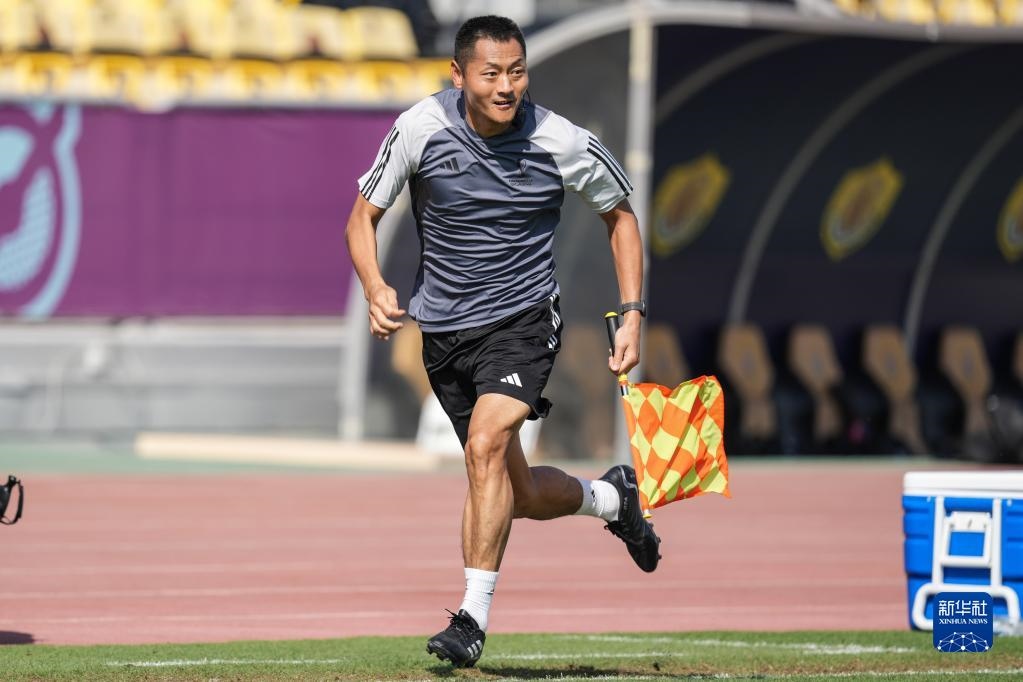 11月18日,中國裁判馬寧在訓(xùn)練中。新華社記者 賈浩成 攝
