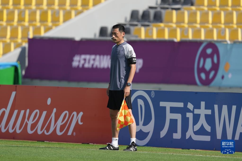 11月18日,中國裁判馬寧(右一)在訓(xùn)練中。新華社記者 賈浩成 攝