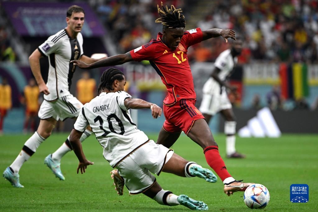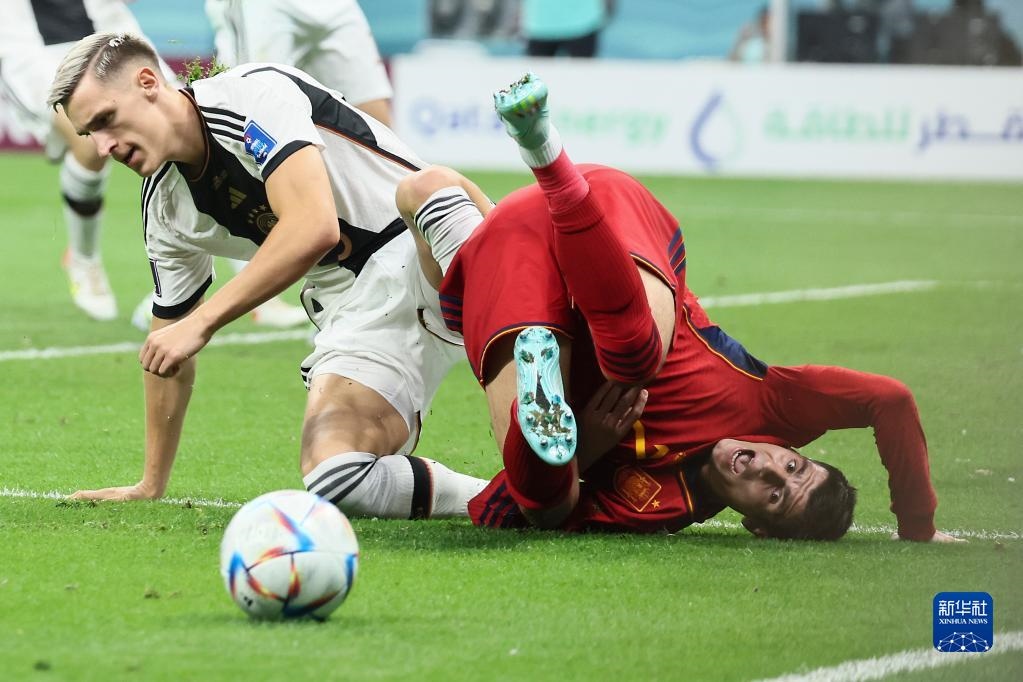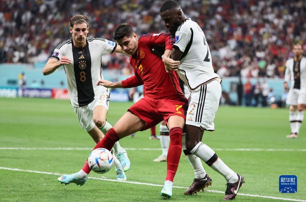 當(dāng)日,在卡塔爾豪爾海灣球場進(jìn)行的2022卡塔爾世界杯足球賽E組比賽中,西班牙隊以1比1戰(zhàn)平德國隊。
