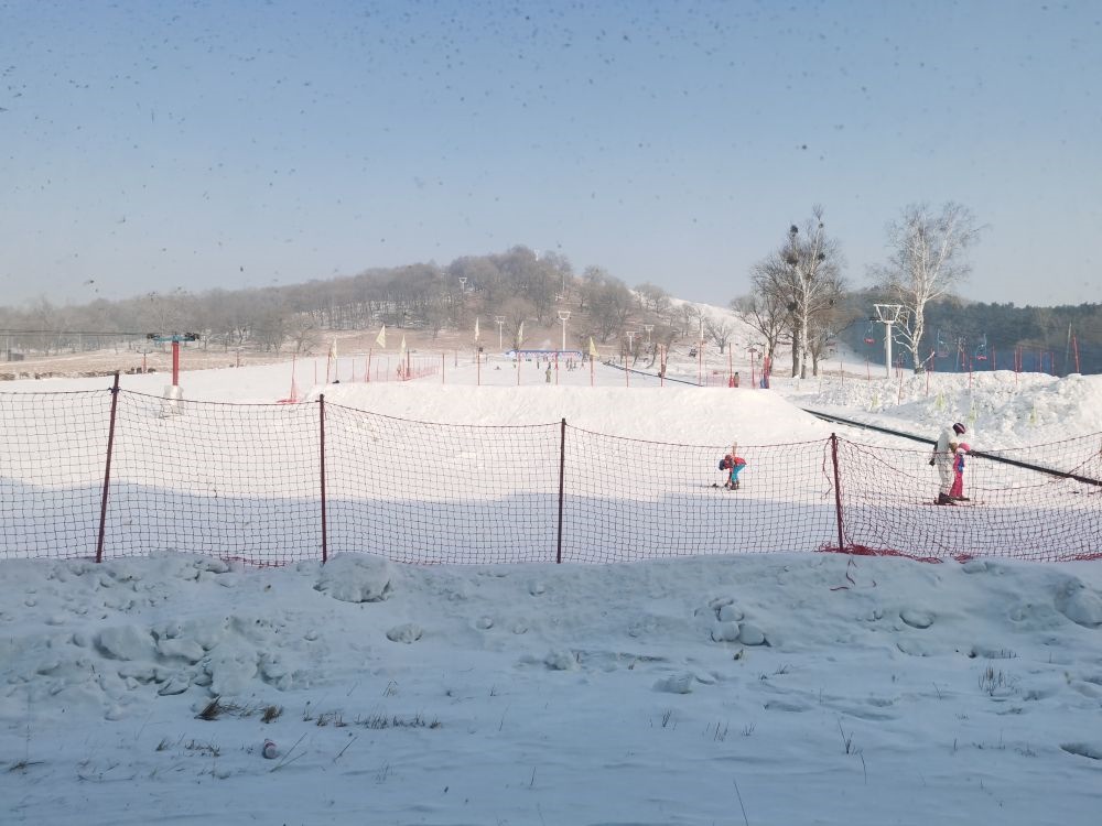 鹿群不遠(yuǎn)處,便是平山神鹿滑雪場,雪道上不少兒童正在這里進(jìn)行研學(xué)活動。