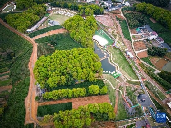 這是3月29日拍攝的諸暨市楓橋鎮(zhèn)陽春村陽春山月游樂度假村(無人機(jī)照片)。當(dāng)?shù)赝ㄟ^閑置荒山土地流轉(zhuǎn)發(fā)展鄉(xiāng)村旅游,幫助當(dāng)?shù)卮迕窈痛寮w增收。