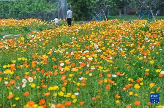 4月11日,游人在織里鎮(zhèn)廟兜村的花海游覽。