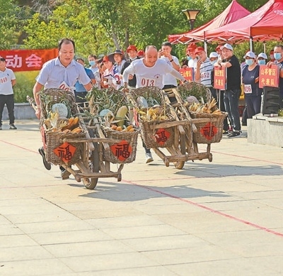 突出“農(nóng)”與“趣”,有效調(diào)動農(nóng)民運動積極性。去年,在四川省成都市新津區(qū)舉辦的全國農(nóng)民體育健身大賽上,參賽的農(nóng)民選手挑著擔(dān)子奔跑、抱著草帽中的瓜果追逐、推著手推車比拼……“帶著豐收的喜悅參加活動,運動也變得更有趣。”成都永紅農(nóng)機專業(yè)合作社社長劉長洪說。