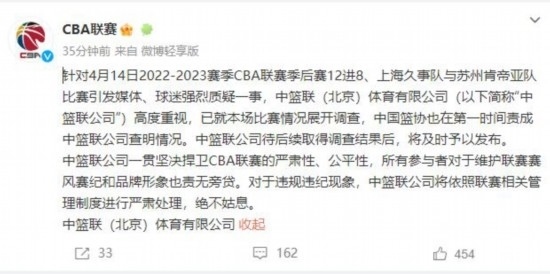 上海對(duì)陣蘇州比賽引爭(zhēng)議,中國(guó)籃協(xié)凌晨發(fā)文回應(yīng)