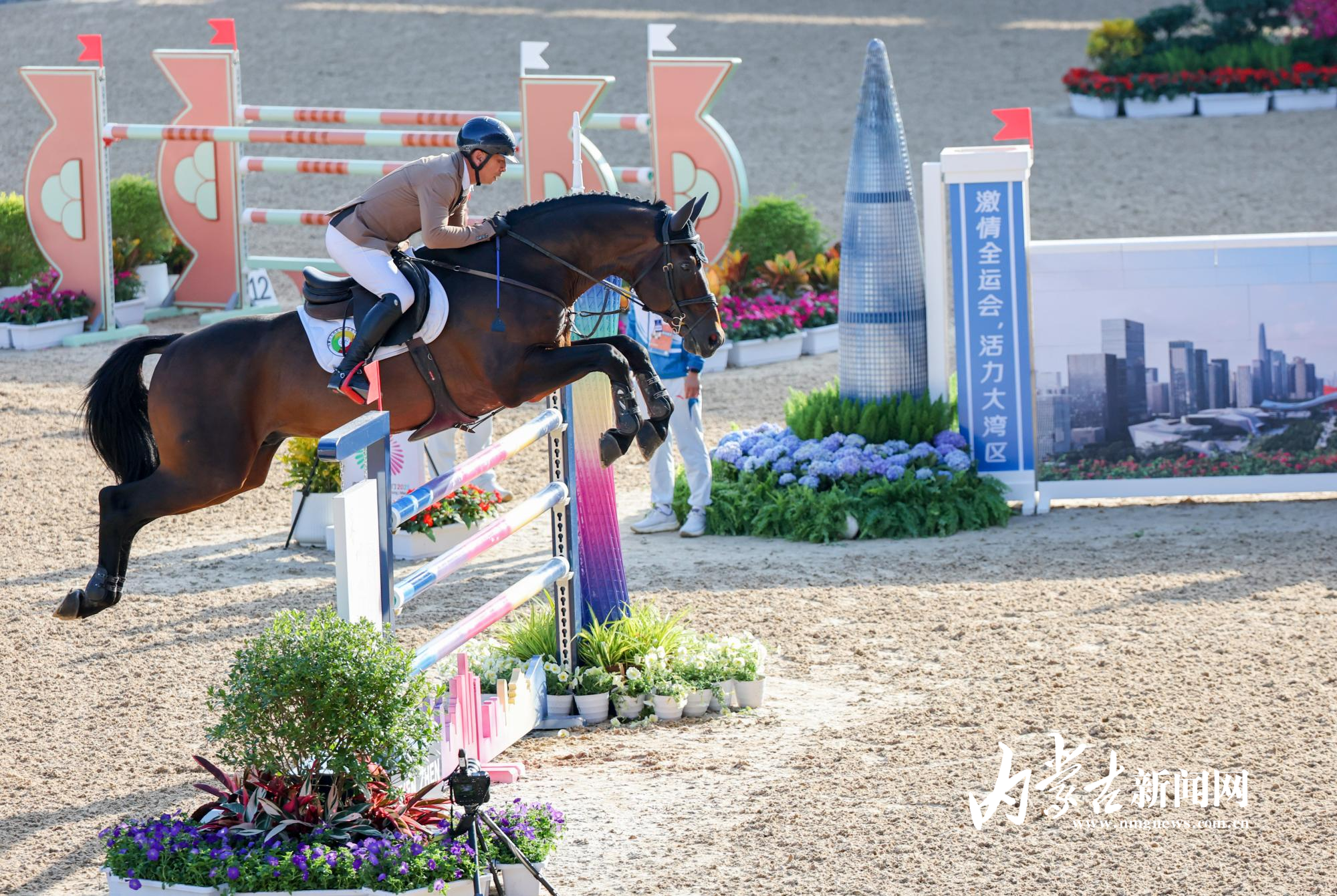 11月17日,第十五屆全國運(yùn)動(dòng)會(huì)馬術(shù)項(xiàng)目場地障礙團(tuán)體賽在深圳市光明國際馬術(shù)中心進(jìn)行,由達(dá)日瑪、劉同晏、張睿、韓豐組成的內(nèi)蒙古隊(duì)?wèi){借兩輪穩(wěn)定發(fā)揮,以總罰分31分的成績斬獲銅牌。
