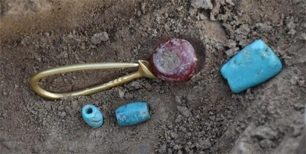 大坨頭文化聚落由內(nèi)、外兩重環(huán)壕圍合,外環(huán)壕直徑142至155米,寬8至12米,圍合面積約1.7萬平方米。內(nèi)環(huán)壕直徑70至72米,寬約18米,圍合面積約0.4萬平方米。在內(nèi)環(huán)壕內(nèi)、內(nèi)外環(huán)壕之間均發(fā)現(xiàn)有灰坑、窖穴、房址等遺跡。環(huán)壕聚落外東南方向發(fā)現(xiàn)27座豎穴土坑墓葬,布局規(guī)律,墓葬方向一致,部分墓葬還出土了靴形足彩陶尊等彩繪陶器、玉玦、綠松石項鏈、紅瑪瑙串珠、扣針形帶翼喇叭口金耳環(huán)等隨葬品,顯示了墓主較高的地位等級。穩(wěn)定同位素結(jié)果顯示,新宮遺址人群的食性以粟為主,肉食水平略高于二里頭遺址人群,并且不同等級墓葬的墓主人之間飲食結(jié)構(gòu)差異不大。該墓地的發(fā)現(xiàn),對于研究大坨頭文化的時空范圍、人群與族屬、喪葬習俗等提供了實物資料。