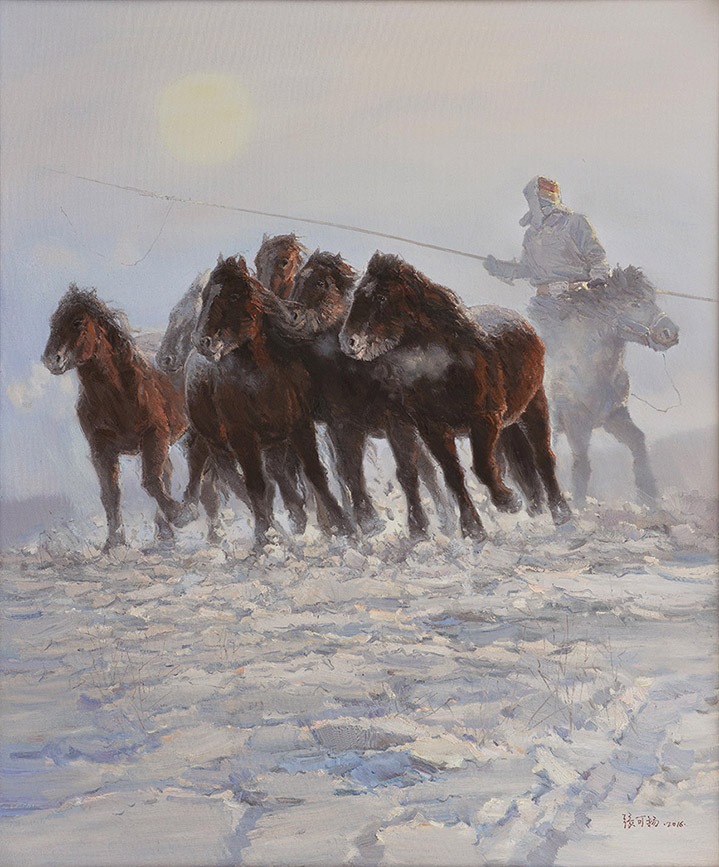 張可揚油畫《天驕飛雪邀明月》