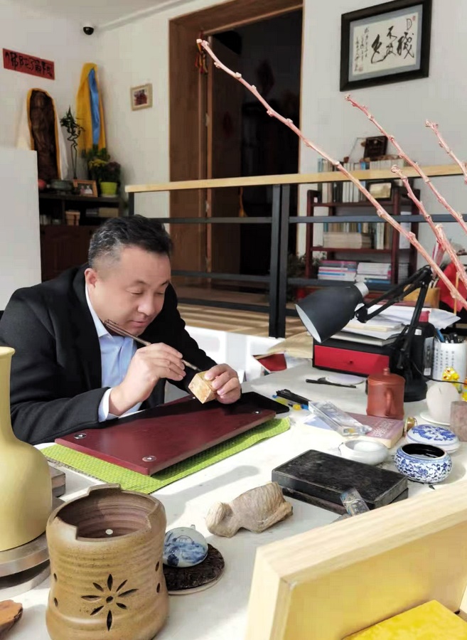 張小方自幼酷愛書法,學(xué)習(xí)之路也很豐富,對(duì)楷、行、篆、隸均有涉足,師從多位書法名家,經(jīng)過多年的潛心學(xué)習(xí)和實(shí)踐,逐漸形成了自己獨(dú)特的藝術(shù)風(fēng)格。然而他與石鼓文的結(jié)緣說來也巧,在蘭州大學(xué)書法研究所學(xué)習(xí)期間,第一次聽了篆刻大家劉洪洋老師的篆書課后,接觸了石鼓文之后再就一發(fā)不可收拾,直至現(xiàn)在一有時(shí)間就是臨習(xí)石鼓文,在這個(gè)書體上用功最勤,并苦心研習(xí)。在學(xué)習(xí)過程中,他又愛動(dòng)腦筋,古今對(duì)照,靈活思考,以經(jīng)典石鼓文為基礎(chǔ),又融入了現(xiàn)代審美觀念,使其作品不失古樸典雅,又富有時(shí)代氣息。