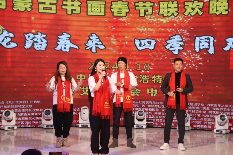 北疆新聞呼和浩特消息 1月10日,以“祥龍?zhí)ご簛? 四季同歡歌”為主題的第三屆內(nèi)蒙古書畫春節(jié)聯(lián)歡晚會在呼和浩特圓滿舉行。本次晚會匯聚了近500位內(nèi)蒙古老中青書畫家、演藝明星、政企嘉賓以及熱愛中國傳統(tǒng)文化的社會各界愛心人士代表,用書畫、歌舞、相聲等豐富多彩的形式,總結2023,展望2024。