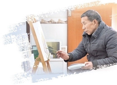 一手托著調(diào)色盤,一手舉著畫筆,眼前一個畫架,陳云發(fā)常常沉浸在自己的創(chuàng)作中。過去,陳云發(fā)以種田和做泥瓦工為生。藝術(shù)區(qū)建設(shè)期間,陳云發(fā)家中的幾間房子被張佰橋租來存放畫具。藝術(shù)家們創(chuàng)作時,陳云發(fā)也在旁邊看。后來,張佰橋送給陳云發(fā)一套畫具,“感興趣,就跟著學(xué)!”