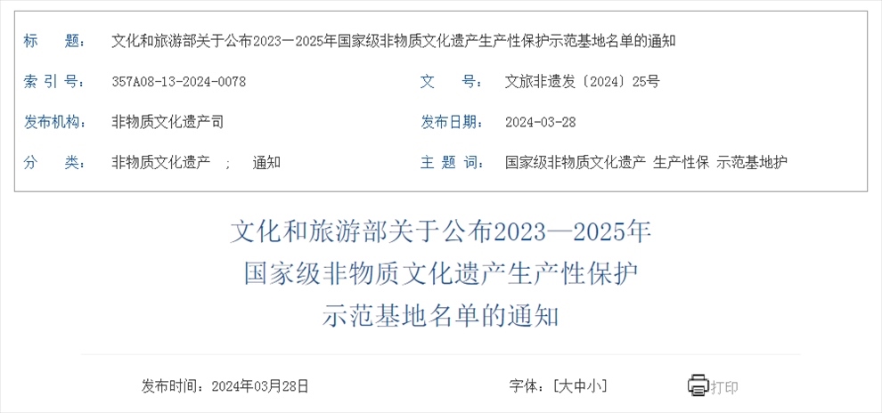 記者3月28日從文化和旅游部獲悉,在各地推薦的基礎(chǔ)上,經(jīng)過專家評(píng)審、實(shí)地考察和社會(huì)公示等程序,文化和旅游部近日認(rèn)定99家企業(yè)和單位為2023—2025年國(guó)家級(jí)非物質(zhì)文化遺產(chǎn)生產(chǎn)性保護(hù)示范基地。
