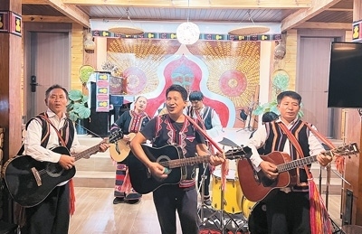 在云南省瀾滄拉祜族自治縣,拉祜族房東扎努的民宿在國慶節(jié)假期迎來滿房。今年4月,扎努改造自家老房子,把民族音樂與民宿相結(jié)合,開了一家音樂民宿——拉祜音宿?!袄镒迨悄芨枭莆璧拿褡濉N蚁矚g與人交流,喜歡鄉(xiāng)村風光和家鄉(xiāng)氣候,所以選擇回鄉(xiāng)開民宿。”作為房東,扎努常常帶游客一起唱歌跳舞,表演他創(chuàng)作的《我在瀾滄等你》《快樂拉祜》等歌曲,并向他們介紹拉祜族的民族歷史和文化。