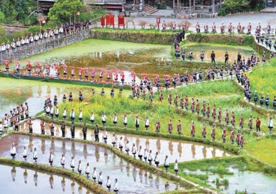 青山環(huán)抱,流水潺潺。貴州省黔東南苗族侗族自治州黎平縣的肇興侗寨,處處皆景:小青瓦、坡屋頂、花格窗,古色古香的吊腳樓錯(cuò)落有致;河流旁、花田間、小巷里,身穿民族服飾的侗族人來(lái)來(lái)往往。