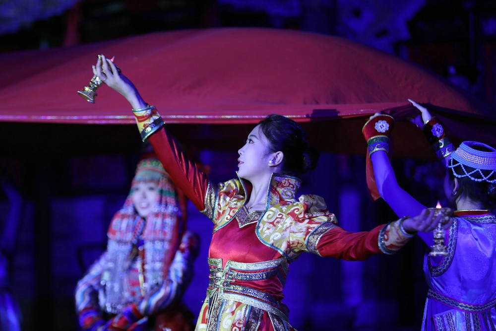 該劇將郡王府作為舞臺,以立體場景為襯托,將鄂爾多斯婚禮等融入其中,頂碗舞、筷子舞、酒盅舞等舞蹈形式穿插,精妙的設(shè)計、精彩的舞蹈和跌宕的劇情,既再現(xiàn)了歷史,也展現(xiàn)了郡王府悠久的歷史文化以及伊金霍洛旗豐富的文旅資源和獨特的文化魅力。