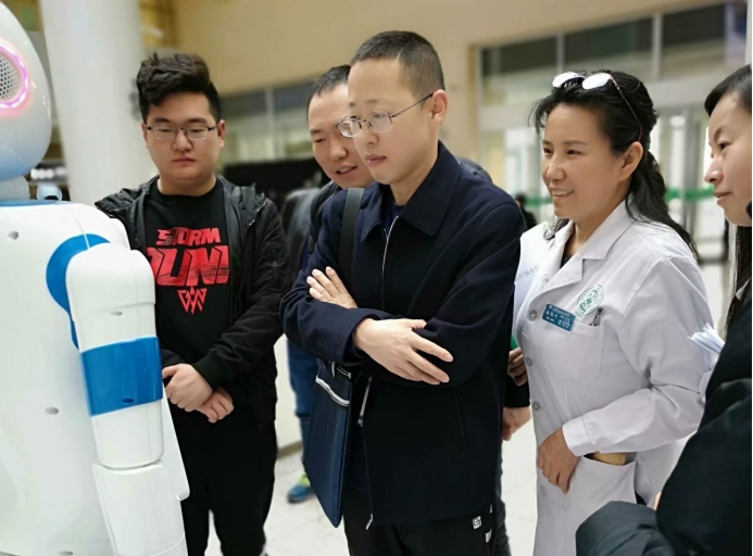 趙俊葉與患者一起體驗(yàn)導(dǎo)診機(jī)器人預(yù)約