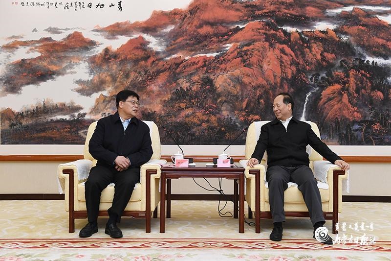 自治區(qū)領(lǐng)導(dǎo)楊偉東、張韶春及有關(guān)部門負(fù)責(zé)同志參加會見。(內(nèi)蒙古日報記者 章奎)