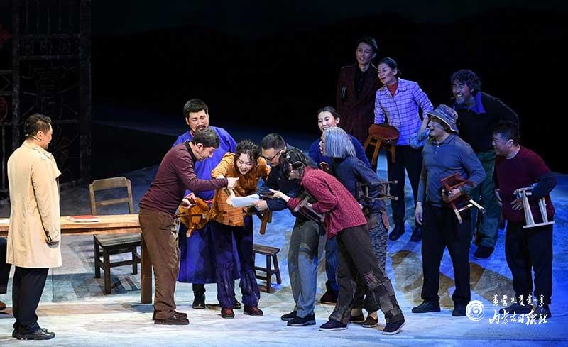《紅手印》自2018年底首演后,不僅在城市劇院公演,還在全區(qū)各個盟市的旗縣進(jìn)行巡演,共計演出60場。一次次表演,一遍遍打磨,造就了這部舞臺精品?!爸餍勺髌芬脒_(dá)到潛移默化的教化作用,不僅要調(diào)動起各種藝術(shù)手段,憑借作品所產(chǎn)生的藝術(shù)效果和感染力使廣大群眾喜聞樂見,還要通過接地氣的創(chuàng)編和演繹,讓劇中的思想深入人心?!睘趿Ω駹柮晒艅F(tuán)團(tuán)長烏蘭牧騎勒說。