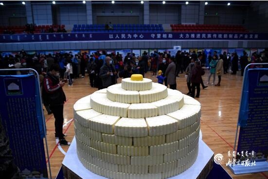 獲得“大世界基尼斯之最”的“浩乳德(拼接)——禮儀奶酪盤”。內(nèi)蒙古日報記者 韓卿立 攝