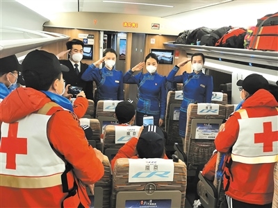 作為連通全國的運輸動脈,在完成常規(guī)運輸任務(wù)的基礎(chǔ)上,高鐵列車還承擔起了運送醫(yī)務(wù)人員、醫(yī)療用品和保障物資的特別任務(wù)。內(nèi)蒙古援鄂醫(yī)療隊員兩批次乘坐G2438次列車從北京中轉(zhuǎn)赴武漢;五批次乘坐“草原動車”由鄂爾多斯回到呼和浩特?!八陀⑿鄢稣鳎佑⑿刍丶摇保叽芜\輸任務(wù),高鐵車隊以最高禮遇和精心的服務(wù),贏得醫(yī)療隊員們的紛紛好評?!爸x謝你們,出發(fā)時為我們送行,歸來時為我們唱起凱旋之歌。”醫(yī)療隊隊員李紅娟緊緊握住列車長張雨的手說。