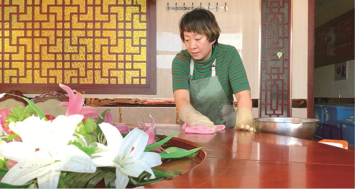 由俊麗正在打掃餐廳準備迎接客人。 劉丹 攝