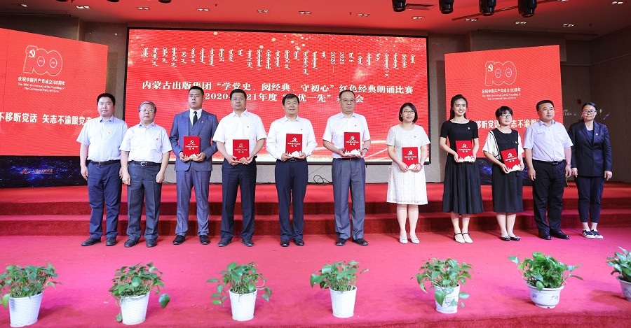 6月26日,內(nèi)蒙古出版集團(tuán)在維力斯大酒店舉辦“學(xué)黨史、閱經(jīng)典、守初心”紅色經(jīng)典朗誦比賽暨2020—2021年度“兩優(yōu)一先”表彰大會(huì)。內(nèi)蒙古出版集團(tuán)黨委書記、董事長(zhǎng)雙龍,黨委副書記王富,黨委委員、副總經(jīng)理扎拉根,副總經(jīng)理王曉玲,總編輯助理黃滔,總經(jīng)理助理白玉峰等領(lǐng)導(dǎo)出席會(huì)議。