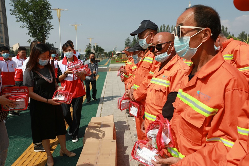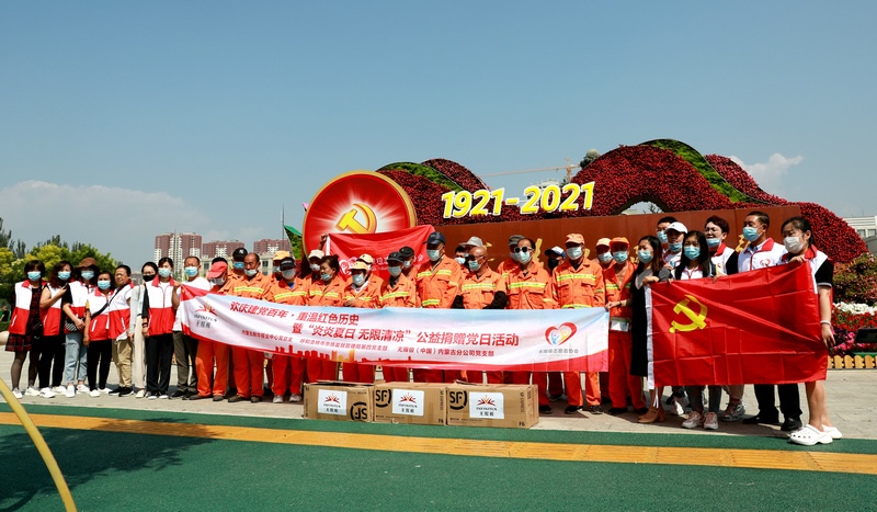 活動(dòng)中,三家黨組織和志愿者們向呼和浩特僑銀城市管理有限公司、呼和浩特市回民區(qū)環(huán)境衛(wèi)生服務(wù)中心的環(huán)衛(wèi)工人共捐贈(zèng)夏日清涼包200套。