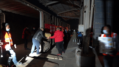 21日中午,額濟(jì)納旗東600多公里外的巴彥淖爾市,派出由50名醫(yī)務(wù)人員組成的醫(yī)療隊(duì)趕赴額濟(jì)納旗之后,當(dāng)晚又啟動(dòng)援助物資調(diào)運(yùn)工作,星夜馳援額濟(jì)納旗。22日凌晨,緊急調(diào)配的一批醫(yī)用防護(hù)服、口罩、多功能防護(hù)面罩等醫(yī)療物資,以及蔬菜、羊肉、牛奶、方便面等防疫物資緊急裝車(chē),由專列送往阿拉善盟。