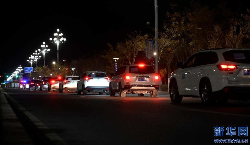 10月28日,即將離開額濟(jì)納旗的滯留自駕游客車隊(duì)。新華社記者 王雪冰 攝