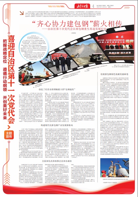 這里是習(xí)近平總書記指出的內(nèi)蒙古創(chuàng)造了“齊心協(xié)力建包鋼”歷史佳話的地方;這里曾見證了在黨和國家領(lǐng)導(dǎo)下,來自祖國四面八方的8萬多各族兒女匯聚塞外,以戰(zhàn)天斗地的氣魄和人定勝天的信念在北疆荒漠建成草原鋼城的火紅歲月。如今,在習(xí)近平新時(shí)代中國特色社會主義思想指引下,新一代包鋼人賡續(xù)紅色血脈,從2016年到2021年,用了五年時(shí)間,戰(zhàn)巨虧,渡難關(guān),以前所未有的改革勇力和百折不撓的攻堅(jiān)勇氣,使企業(yè)起死回生、涅槃重生,從營業(yè)收入上創(chuàng)造出用五年時(shí)間再造兩個(gè)包鋼的奇跡,在內(nèi)蒙古這片熱土上續(xù)寫了“齊心協(xié)力建包鋼”的新時(shí)代篇章。