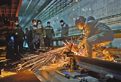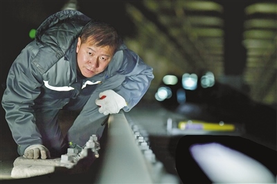 昏暗、逼仄的軌行區(qū)內(nèi),軌道檢修師們焊接鋼軌時(shí)迸發(fā)的火花顯得格外耀眼,維修軌道設(shè)備時(shí)敲擊鋼軌的聲音顯得格外清脆、響亮。據(jù)田智宏介紹,一個(gè)軌道檢修師每次夜間軌行區(qū)的巡檢作業(yè)大約要走7公里路程。他和工友們每天要檢查數(shù)千個(gè)部件,測(cè)量上百個(gè)數(shù)據(jù),其中一項(xiàng)重要巡檢工作就是檢查扣件和接頭聯(lián)結(jié)零件的組成部件是否安裝牢固,螺栓是否松動(dòng)。他指了指自己腳上的鞋說(shuō):“我們的檢修對(duì)象不僅笨重且危險(xiǎn)性較高,為了防止腳部受到傷害,鞋子都是特制的防砸絕緣鞋。”