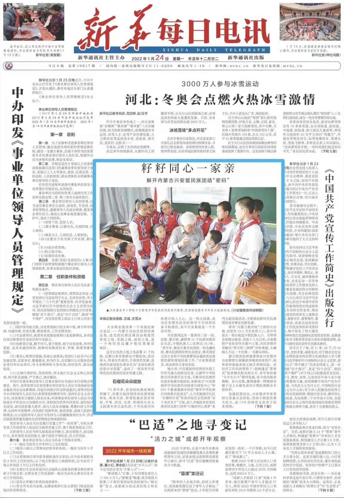 她介紹,興安盟始終把做好民族工作作為重大的政治任務(wù),以鑄牢中華民族共同體意識(shí)為主線,不斷深化民族團(tuán)結(jié)進(jìn)步創(chuàng)建實(shí)踐活動(dòng),創(chuàng)新成立“興安盟鑄牢中華民族共同體意識(shí)研究中心”和835個(gè)覆蓋盟旗鄉(xiāng)村的“鑄牢中華民族共同體意識(shí)促進(jìn)會(huì)”,大力實(shí)施城市社區(qū)“石榴籽計(jì)劃”和農(nóng)村牧區(qū)示范典型“雙十雙百雙千”工程,深入開(kāi)展脫貧攻堅(jiān)民族團(tuán)結(jié)互助行動(dòng)和“石榴籽同心筑夢(mèng)”系列主題實(shí)踐活動(dòng),不斷推動(dòng)新時(shí)代民族團(tuán)結(jié)進(jìn)步事業(yè)創(chuàng)新發(fā)展。