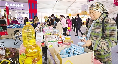 滿洲里互貿區(qū)的商品吸引附近的牧民前來購買。 記者 李新軍 攝
